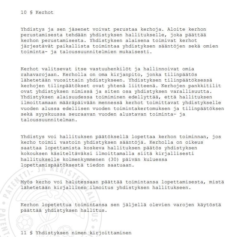 Ote kerhotoiminnasta Uudenmaan Parkinson-yhdistyksen (UPY) säännöissä: